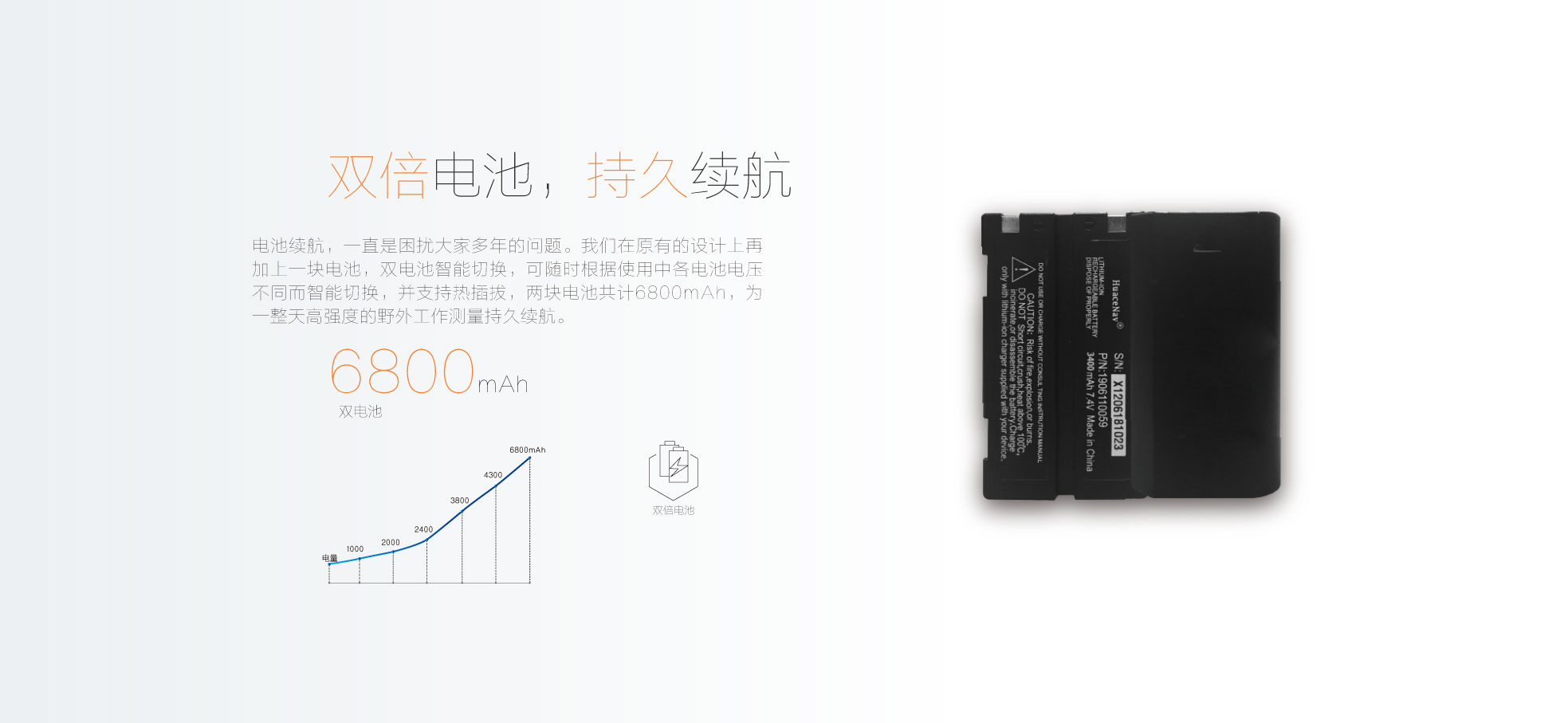 毫安時超大容量電池,完全保障用戶兩天的高負荷使用,防水防塵達到工業(yè)IP68等級,為外業(yè)工作提供更多便捷。